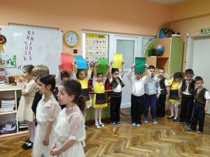 Час по родолюбие в ДГ“Слънце“ и издигане знамето на гр.Шумен10.05.2019Преди церомонията по откриването на празника на гр.Шумен–11май.Групата на ДГ“Слънце“11.05.2019 Покажи всички Корпус 2 с много песни и танци в час по родолюбие. Публикувано в Администрация на 10.05.2019 Категории Новини Тагове Свързани статии10.04.2026Спазихме традицията и днес на Велики четвъртък децата заедно със своите учители изпъстриха яйца. Първото боядисано яйце във всяка група бе червено и всеки получи червенина на бузките с наричането „Светъл Великден, здраво дете!“. А след това фантазията на малките слънца се развихри и те изписаха яйцата си чрез различни техники: с пастел, памук, сол и др. Беше много забавно 😀Прочети още09.04.2026📌 ВАЖНО!!! 📌 Уважаеми родители, Информираме Ви за актуалните срокове, свързани с приема и записването на деца в детските градини на територията на община Шумен, с цел да Ви окажем съдействие при следващите етапи от процедурата. Децата приети на първо класиране, следва да се запишат в желаната детска градина до 17 април. За родителите, чиито деца не са класирани на първи етап или желаят да участват в следващи класирания, подаването на заявления е възможно в следните срокове: 📍за второ класиране: от 22 до 24 април; 📍за трето класиране: от 12 до 15 май. Приемът на децата се осъществява чрез електронната система за прием на Община Шумен. С графика може да се запознаете чрез линка: https://www.shumen.bg/bg/aktualno-za-detski-gradini Напомняме също, че за децата, които завършват детска градина, предстои прием в първи клас, който ще започне на 8 юни чрез електронната система на адрес: https://school.shumen.bg/ Надяваме се с информацията да Ви бъдем от полза!Прочети още09.04.2026Бъдещите първокласници от ДГ „Слънце“ научиха от горския педагог Татяна Димитрова, че учителите са били първите, които са започнали са засаждат гори, след Освобождението. Децата узнаха още, че за да стане една фиданка готова за засаждане за нея горските служители се грижат 5 години. Малчуганите чрез игри и викторина демонстрираха знанията си за гората, за нейните обитатели, за правилата, които трябва да се спазват, когато сме на излед, и какви грижи трябва да полагаме, за да я има. Урокът бе съвместен със СИДП – Шумен и бе посветен на Седмицата на гората.Прочети още