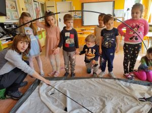 25.11.2024Децата от големите групи на ДГ „Слънце“ в Шумен учиха днес какво трябва да правят когато са на поход в гората и как да си построят лагер. С помощта на своите преподаватели и горският педагог на СИДП малчуганите сами опънаха палатките си, наредиха всички необходими неща в раницата и преговориха правилата за палене на огън в гората. Оказа се, че малките ученици са запомнили спешния телефон 112 на който звъним при пожар, както и това че след пикник трябва да загасим огъня с вода, пръст или пясък, за да не подпалим гората. По време на урока децата научиха как се работи с компас и защо магнитната стрелка винаги показва север. Голяма атракция за малчуганите беше туристическата раница и челника за нощни преходи в планината. Идеята на уроците по проекта „Силен старт“ е малките ученици да придобият нови знания свързани с природата, опазването на горите и животните и съхраняването на всички ценни видове в ПП „Шуменско плато“. Проектът е по процедура „Обща и допълнителна подкрепа за личностно развитие с предучилищното образование“, като финансирането му е от Министерството на образованието.