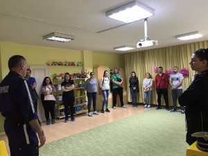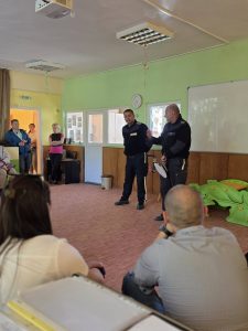 29.04.2025Предвид зачестилите пътно-транспортни произшествия с жертви-деца на пътя, ДГ “Слънце” проведе с родителите на децата тематична родителска среща. Нейни специални гости бяха инспектор Мирослав Миронов ,инспектор Николов и инспектор Иванов от сектор “Пътна полиция” към Областна дирекция на МВР – Шумен. Те подчертаха, че децата имат нужните теоретични знания, но често стават свидели на различни нарушения от страна на своите родители – неправилно паркиране, пресичане, използване на предпазни колани в автомобила…. Призоваха родителите, с личния си пример да бъдат тези, които ще научат децата как да пътуват и пресичат безопасно