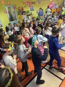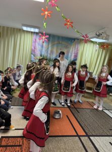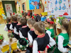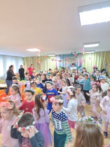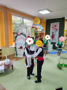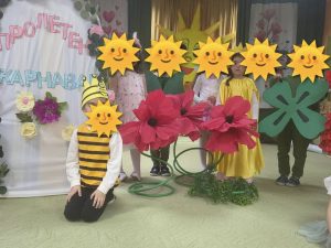 23.03.2026В днешния пролетен ден в детската градина цареше истинска празнична атмосфера. Макар времето да не беше слънчево, настроението на децата беше топло и радостно. Малките лазарки от групите „Чучулига“ и „Звездичка“, представиха обичая Лазаруване. С песни и танци те наричаха за здраве, щастие и плодородие. Гласчетата им звучаха нежно и празнично, а децата ги слушаха с интерес и гледаха с възхищение. Така всички имаха възможност да се докоснат до българските традиции и да усетят духа на пролетта. След това празникът продължи с Карнавал на цветята. Всички деца бяха облечени като различни цветя – рози, лалета, маргаритки и слънчогледи. Детската градина се превърна в истинска цветна гра